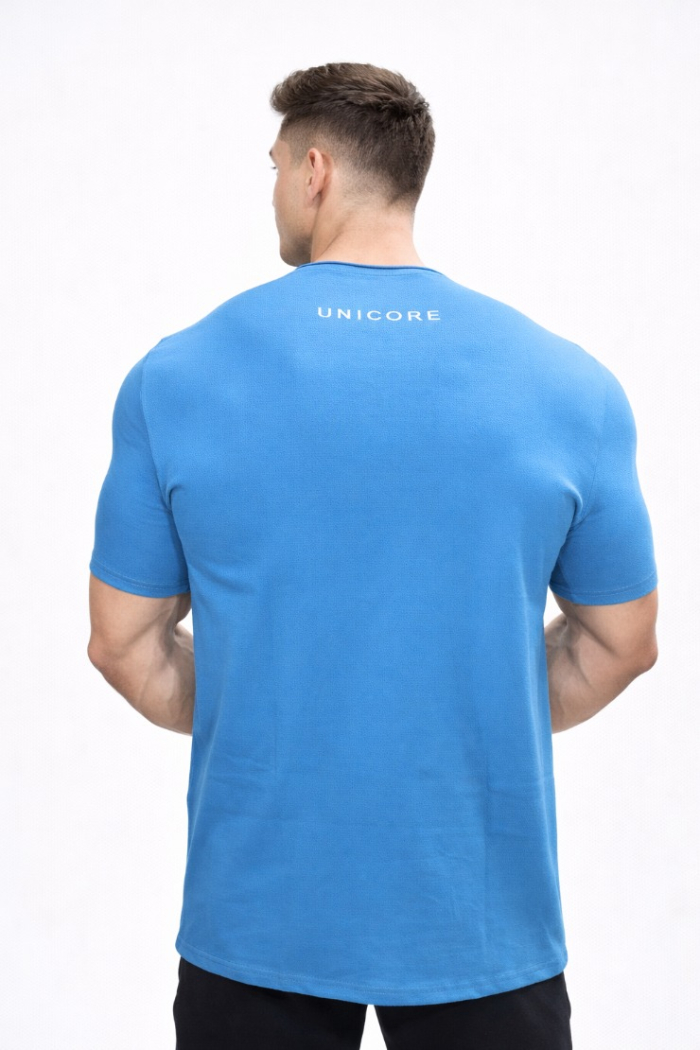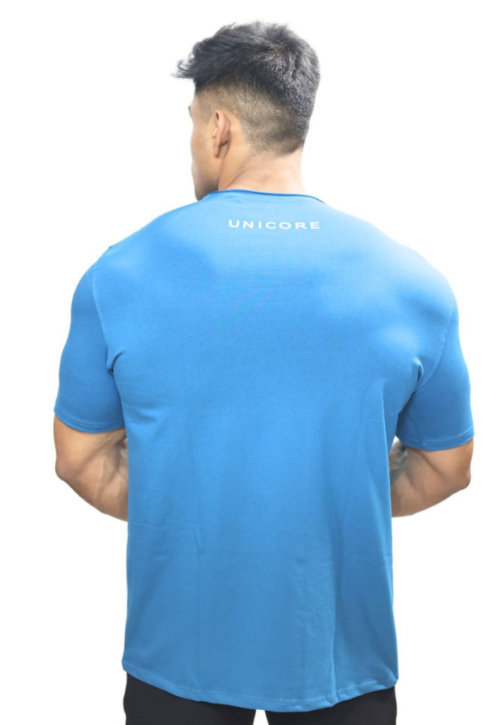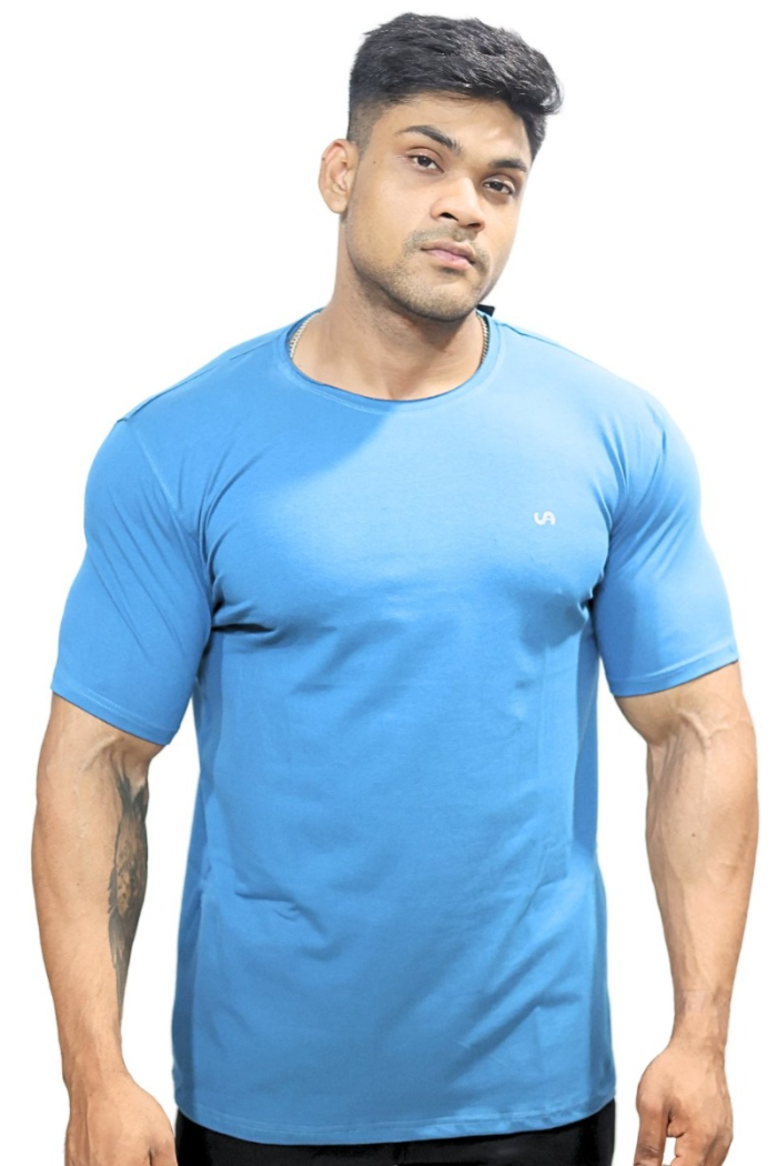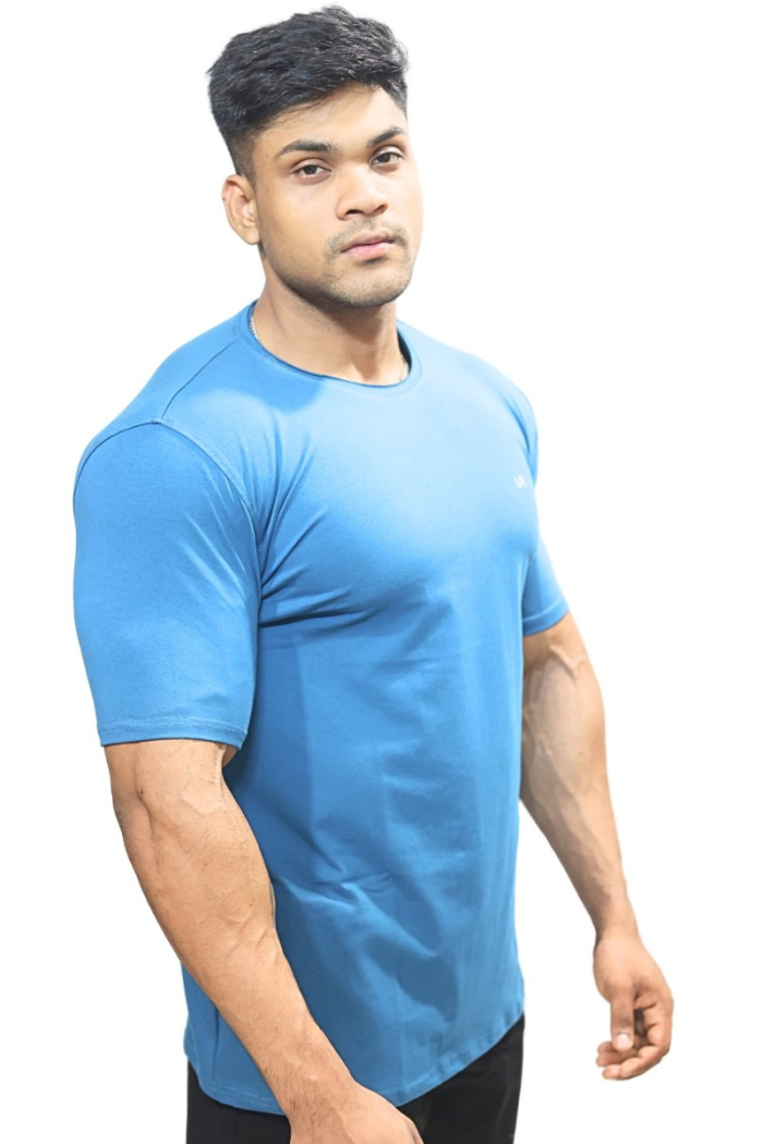 The air force blue shade brings personality without limiting your styling options. Pair it with dark denim for timeless casual appeal, throw it on with joggers for athleisure vibes, or layer it under a jacket when temperatures drop. This tee is that rare piece that works for literally everything—gym sessions, casual hangouts, coffee runs, or Netflix marathons.