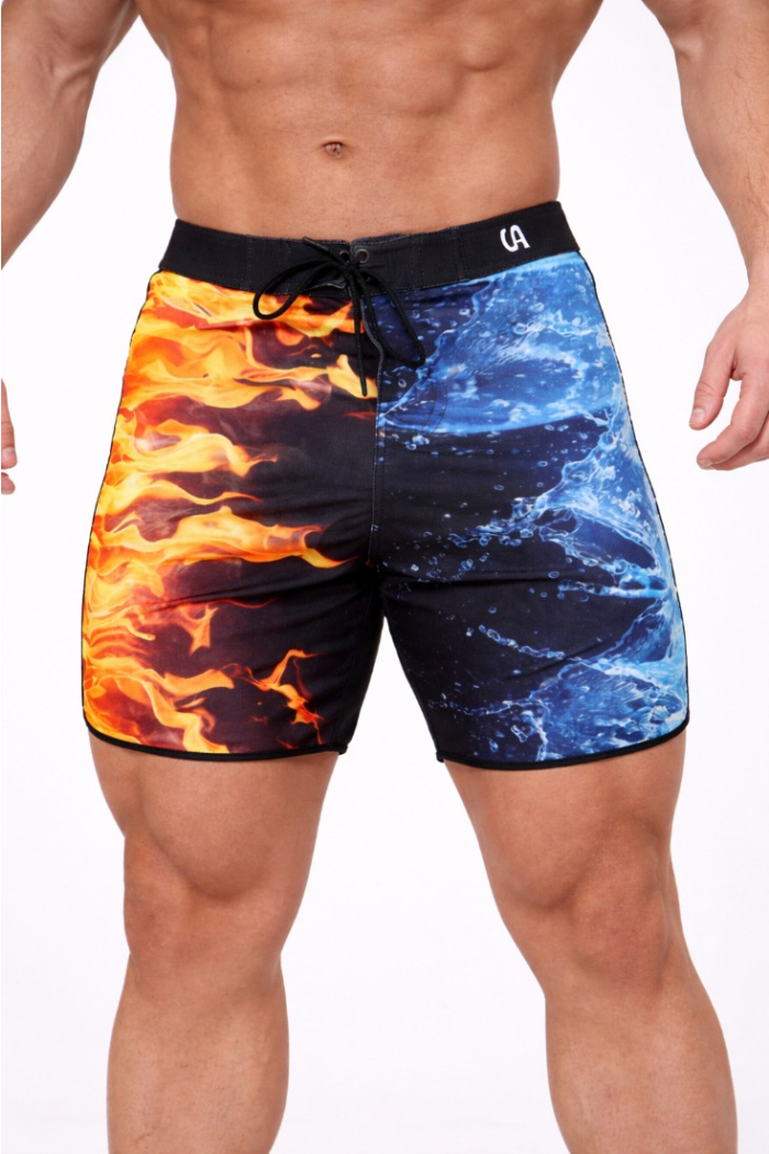 The Aqua Flame Board Shorts are your answer to summer heat, training intensity, and coastal cool. They combine next-gen performance fabric with a look that turns heads—featuring a vibrant aqua base and energetic flame accents that move as hard as you do.