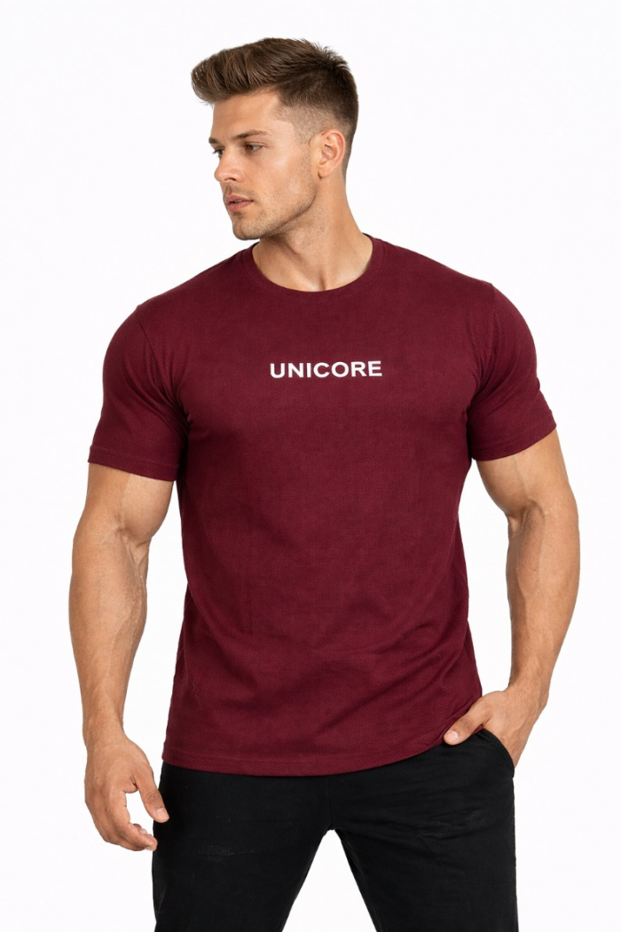 The fit? Just right. It’s structured enough to highlight your physique but relaxed enough for all-day wear. Whether you’re crushing a workout, heading out for a casual meet-up, or just keeping things cool and effortless, this tee has you covered. The maroon shade brings a bold, confident energy, while the minimal detailing keeps it sleek and versatile.