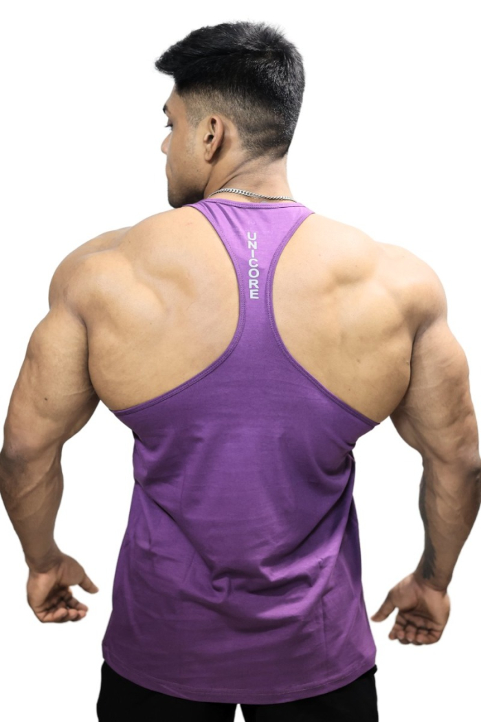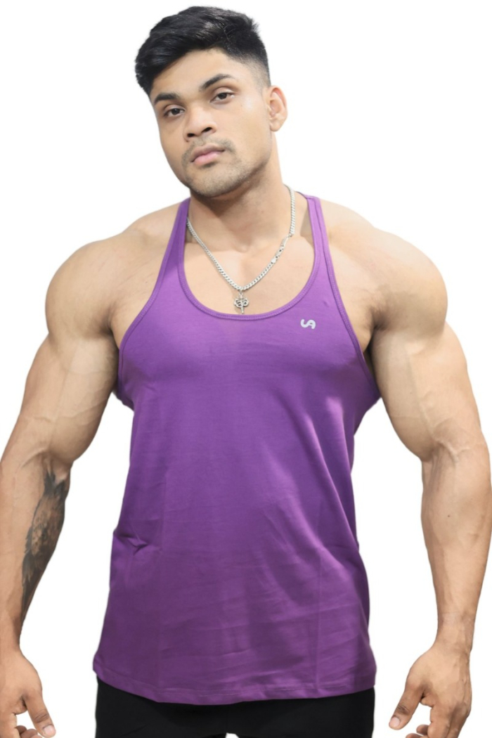 Who said gym stringers can't look sharp? The purple shade makes a bold statement without being over the top. Whether you're in the weight room, hitting cardio, or grabbing a post-workout smoothie, this stringer makes sure you look effortlessly put together. The minimalist design keeps things sleek while the color brings personality.